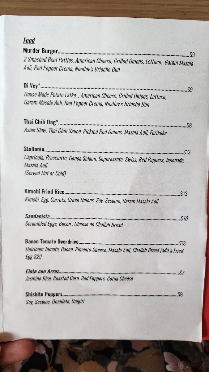 Lo Main offers a thoughtfully curated menu centered around casual bites and comforting drinks, perfect for unwinding in a relaxed neighborhood setting. The food leans into inventive takes on familiar favorites, featuring items like the boldly flavored Murder Burger and the distinctive Thai Chili Dog. These dishes, alongside unique offerings such as shishito peppers and the Oi Vey veggie option, suit a laid-back evening or a casual night out with friends.